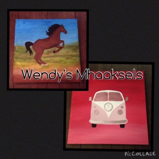 Voor de duidelijkheid en waarschijnlijk geheel overbodig: Het paard is gemaakt door dochterlief, het nostalgische volkswagen busje in het roze door mijzelf. Waar het hart van vol is…. lopen de schilderijen van over 😉