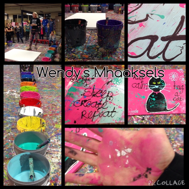 Jacksart.nl jullie hebben het echt keurig opgelost! Die tweede avond ging ik dus alleen, wel een stuk minder gezellig natuurlijk maar dolblij dat het zo mocht want een kapot schilderij aan de muur stoort toch iedere dag weer. Deze workshopavond maakte ik het schilderij met de kat met tekst.