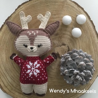 Today it’s our daughters birthday. And every year she gets, besides presents we buy for her, a handmade present by me. Our daughter love Christmas, Christmas decoration, Christmas music, Christmas movies, etc. So when I saw the crochetpattern of this lovely deer, I knew immediately I’d make this for her birthday. And when she came down the stairs yesterday evening wearing her ‘bad’ Christmas sweater with Rudolph on it, I knew I couldn’t have made a better choice 😉