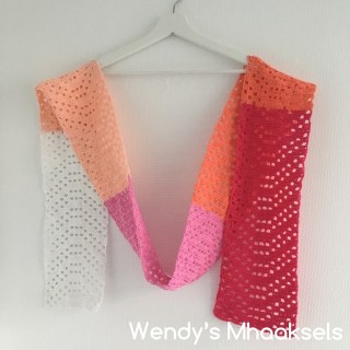 While the sun is shining in Holland and I’m enjoying a cup of tea in my garden I’m writing this blogpost about a scarf 😉 But don’t worry, it’s a crochet summerscarf! In bright, summer shades. Crocheted with cotton and a filet crochet pattern. So, it’s a lovely summerscarf for the still cool evenings. The crochet pattern is clear written by Mabel by Happpiness with Yarn (CLICK HERE for the English pattern).